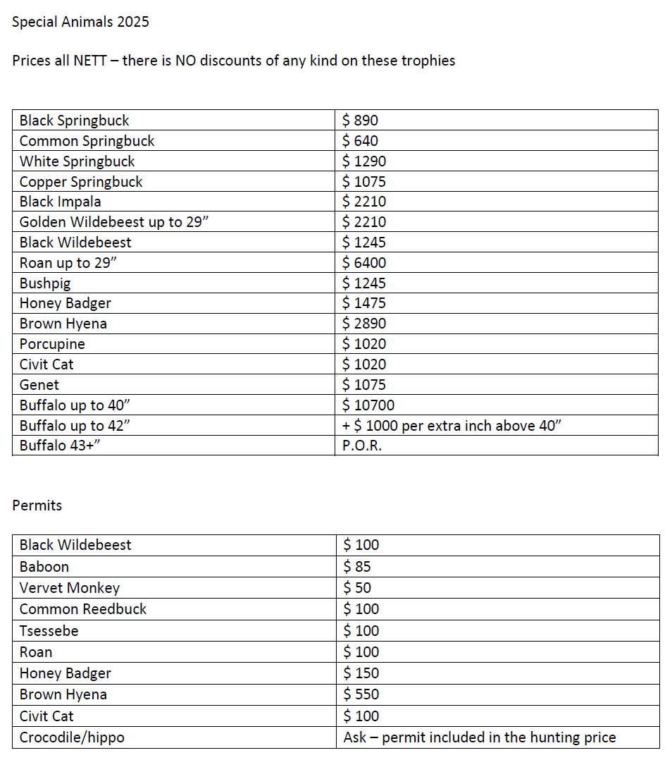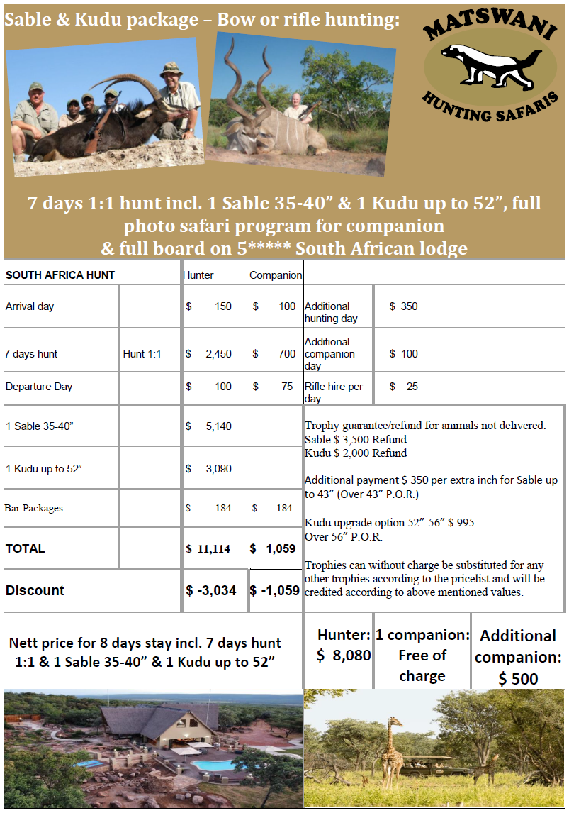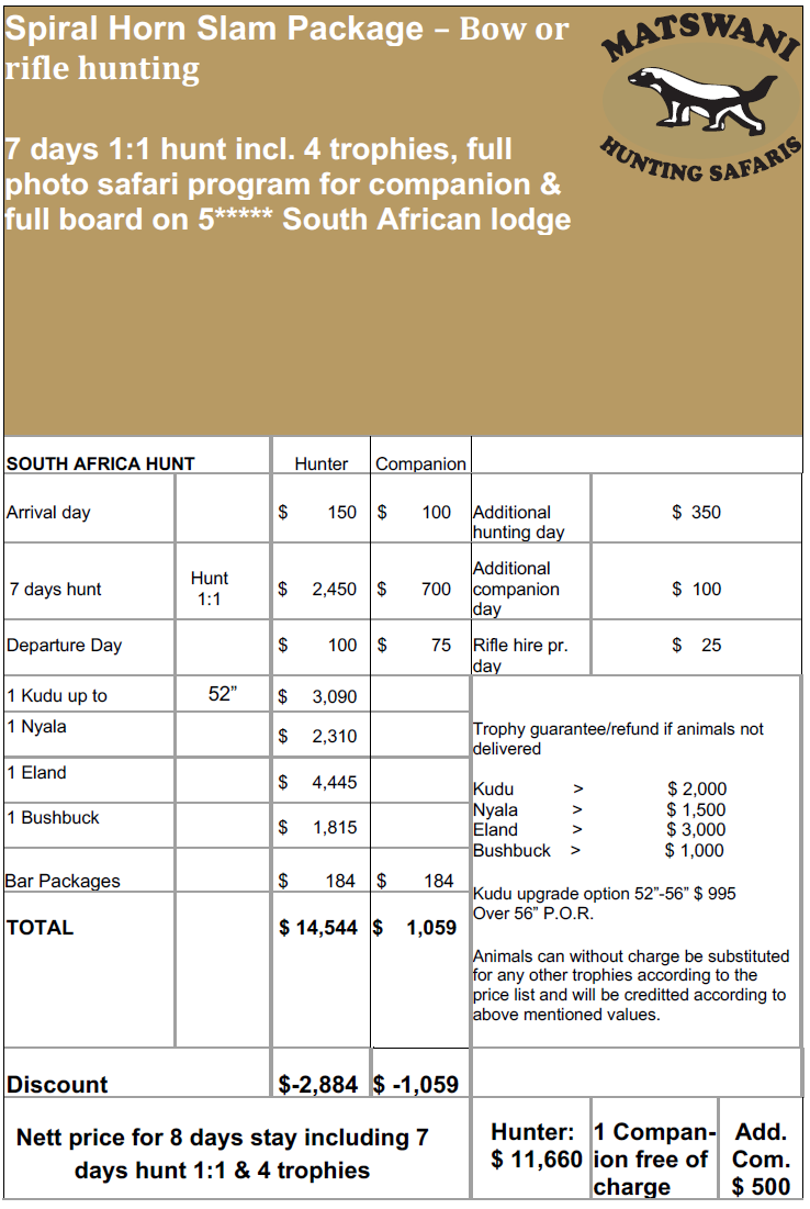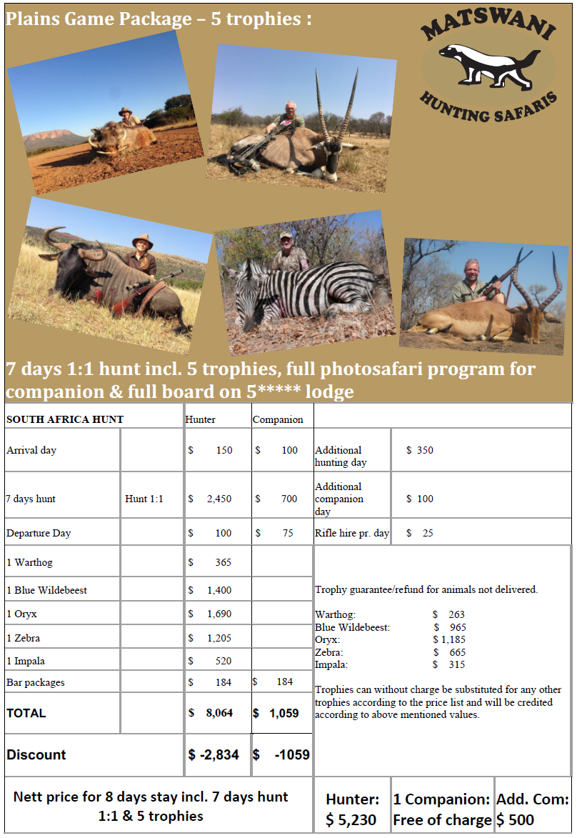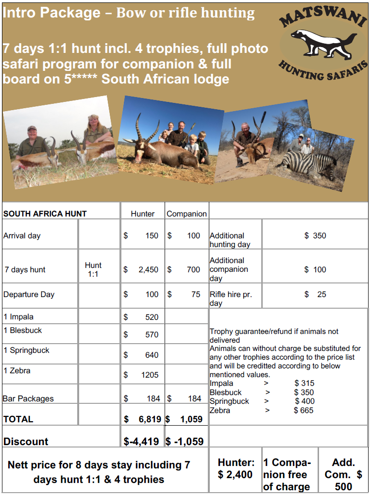 Ved jakting av min 4 trofeer til en verdi av min USD 3000.00 gis 10% rabatt.
