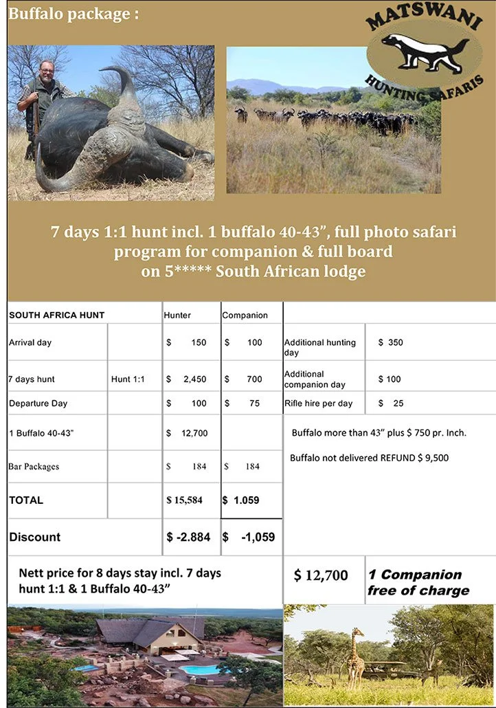 Dagen starter normalt tidlig , ca kl 0530 er det en flott frokost laget av stedets egen kjøkkensjef. Det jaktes deretter inntil varmen kommer og dyrene blir mindre aktive. Da er det tid for en pause i den vakre lodgen eller under et tre om ønskelig. Uansett er det en god lunsj som venter da. Kanskje også en hvil ved svømmebassenget sammen med evt andre familiemedlemmer som også vil ha en fin tid her. Og etter det jakt inntil mørket kommer. Alt dette legges opp etter eget ønske sammen med din egen ph. Ønsker en og slappe av på ettermiddagen etter en vellykket jakt på formiddagen er det selvføgelig helt i orden. Betjeningen ønsker og legge til rette for det beste og bedre steder finnes sannsynligvis ikke i Sør Afrika.